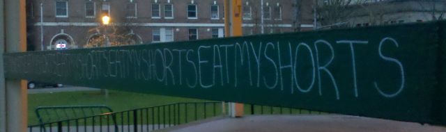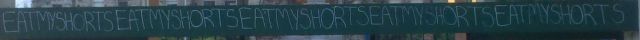 Evergreen alum Matt Groening created the puckish Bart Simpson, and here we find Bart’s catch phrase scrawled detention-style along the green (heart) path of Strength/Voice binding the poles of Severity (The Geburah Corner) and Mercy (Emma Page’s Fountain.)